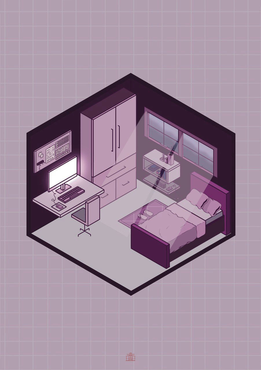 Isometric Room Art Print (purple)